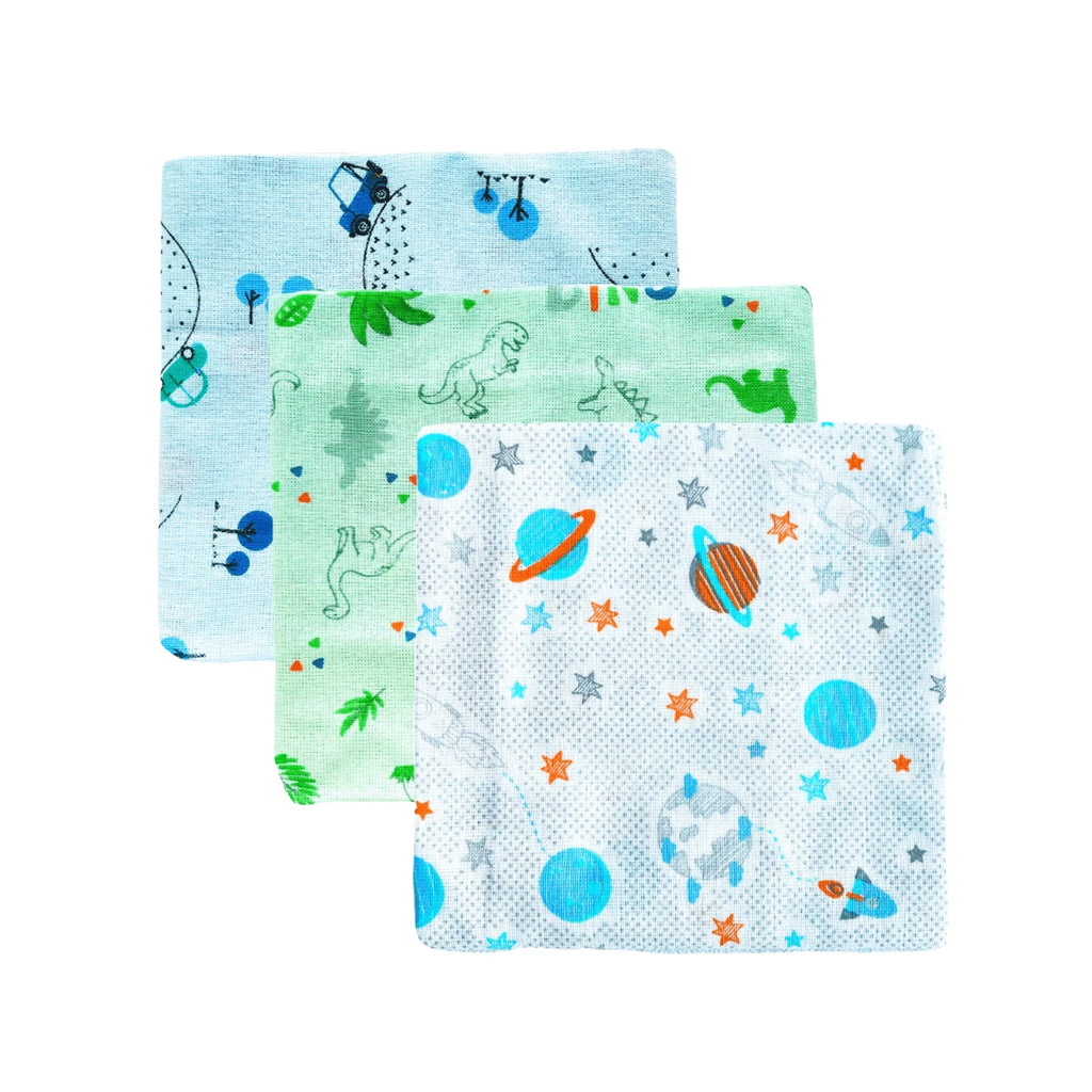 – 1 Kit com 3 unidades de cueiros flanelados e estampados, no tamanho 80 cm x 50 cm, da marca Papi;