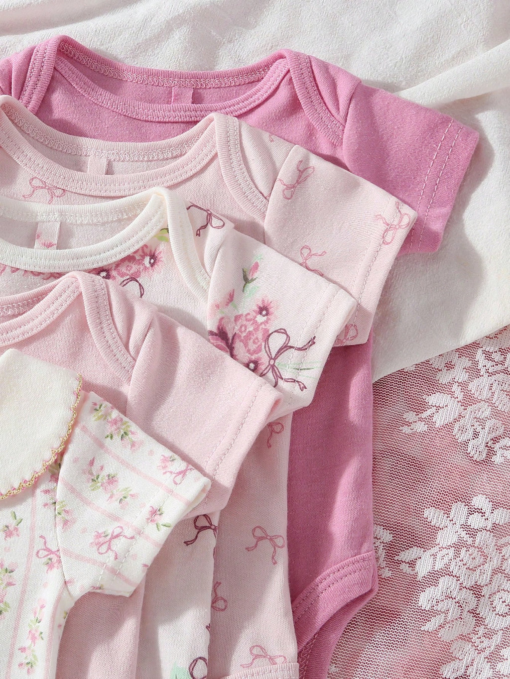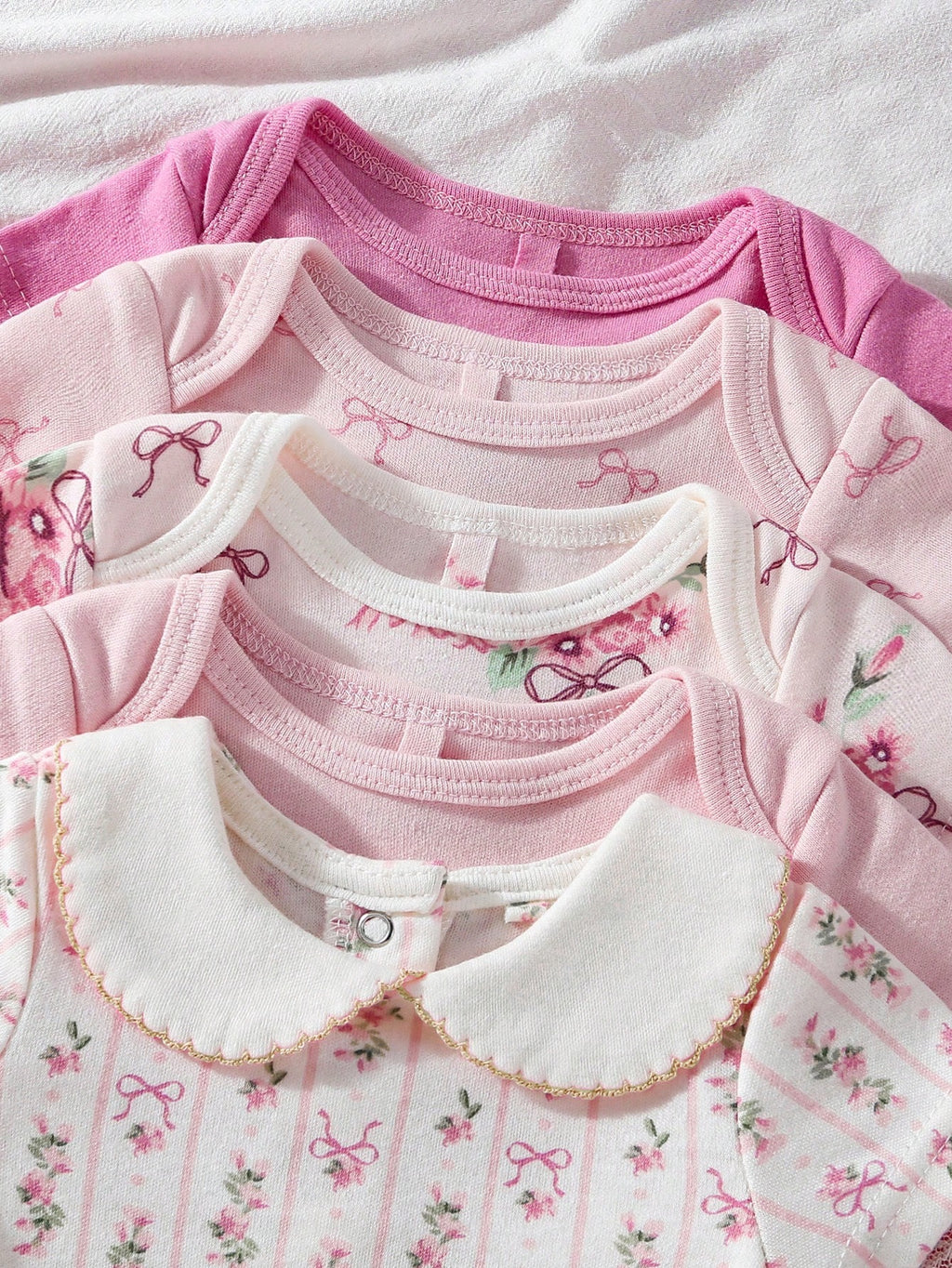 Cor: Kit body bebê 5 peças Tons de Rosa