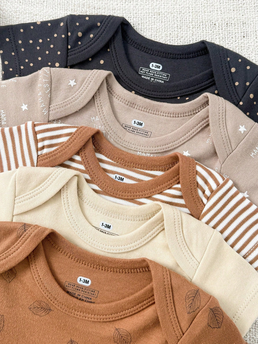 O  Kit body bebê 5 peças Toy Boy multicor  | é aquele tipo de escolha que facilita a rotina e acompanha o crescimento da bebê com conforto e praticidade. Feitos em malha de ribana 100% algodão, se ajustam ao corpinho com suavidade, sem apertar. A gola redonda com ombros americanos transpassados torna o vestir mais fácil, especialmente nos momentos em que tudo precisa ser rápido e tranquilo. As mangas curtas protegem na medida certa, e o abotoamento entre as perninhas garante trocas de fralda sem complicação. É o tipo de kit que resolve o dia com leveza, seja em casa ou no passeio.
