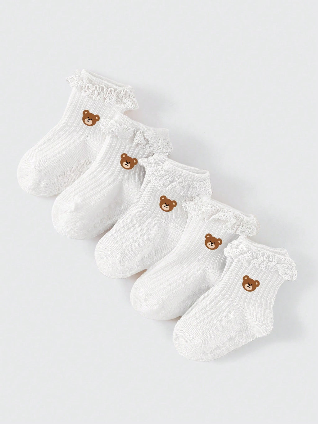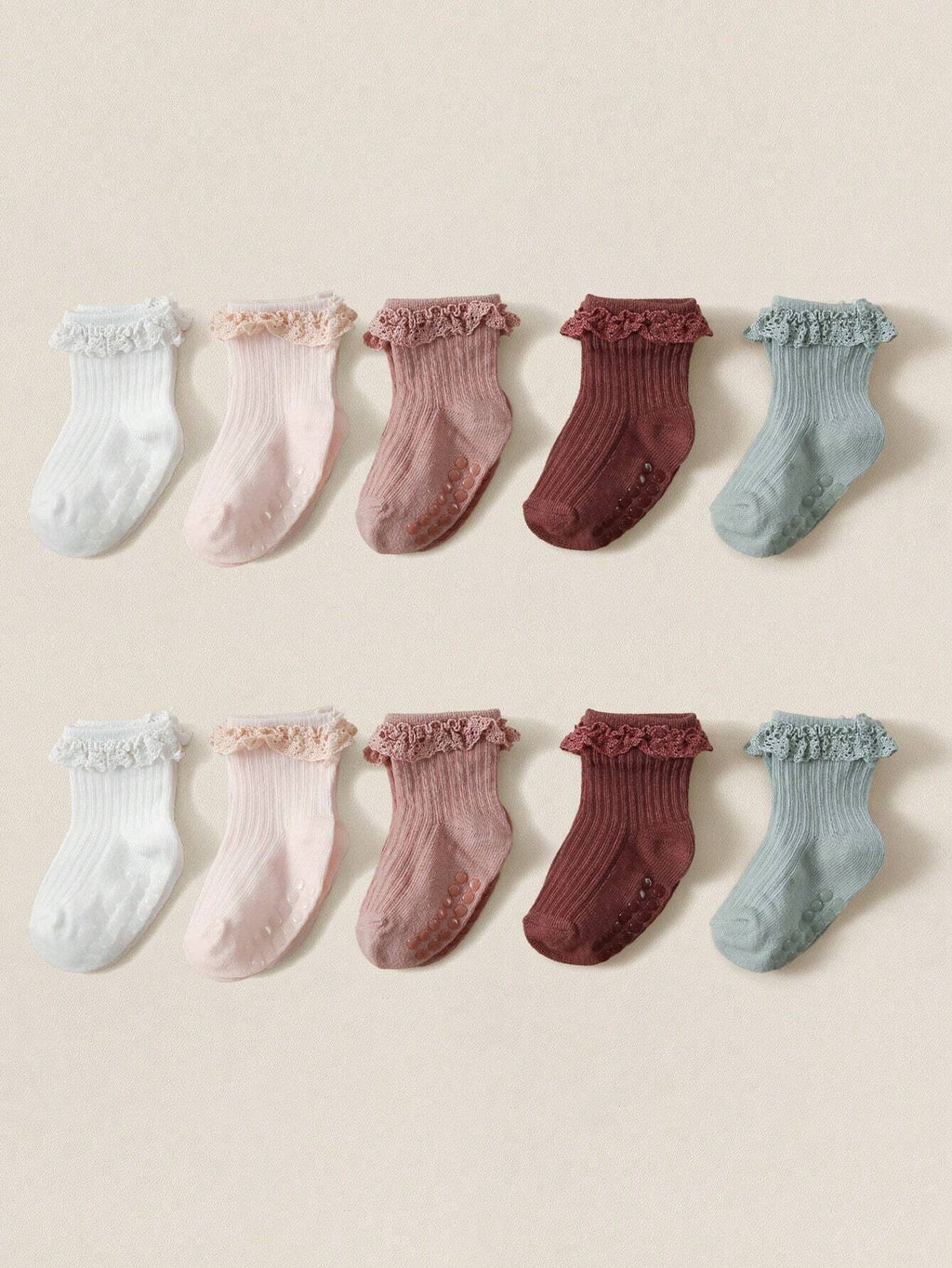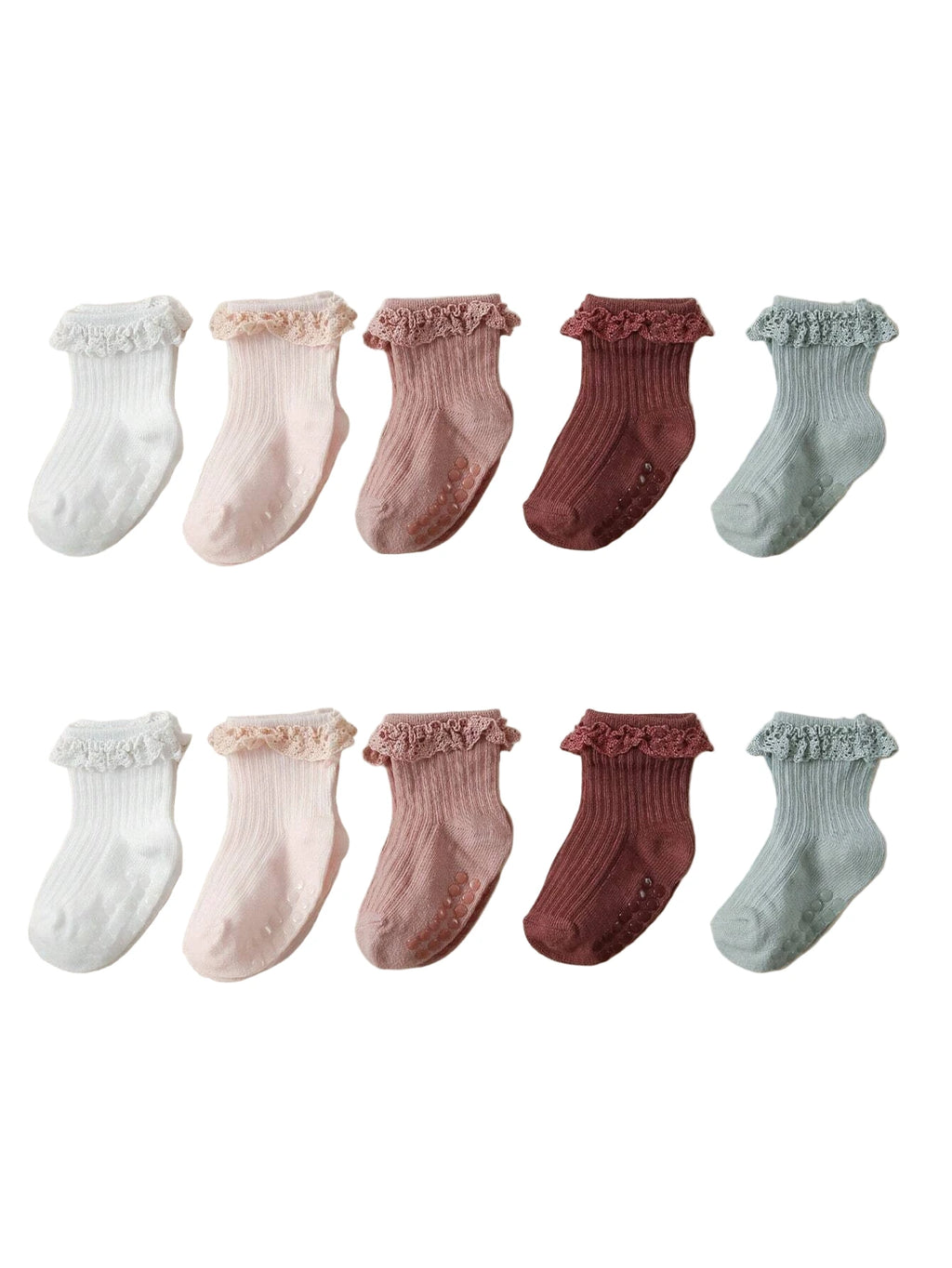 Cor: 5 Pares De Meias Anti-derrapantes Com Renda