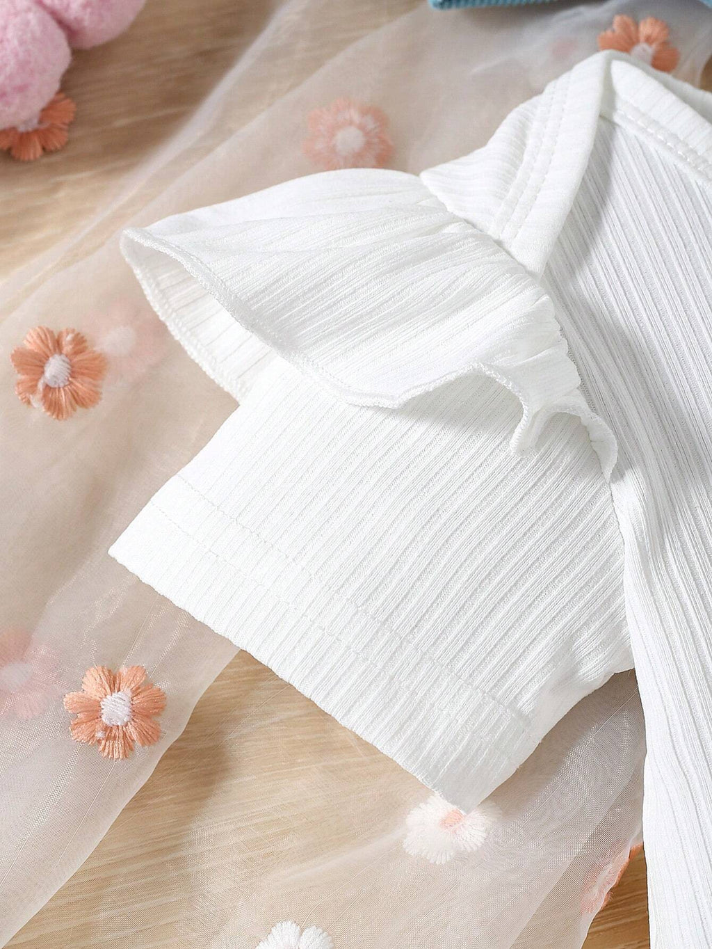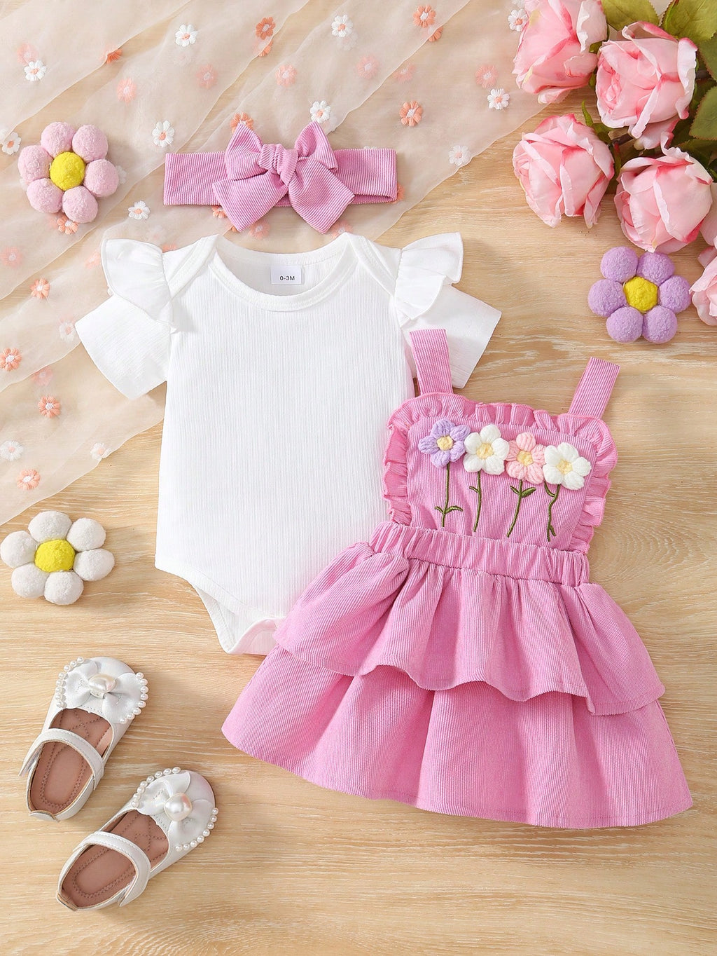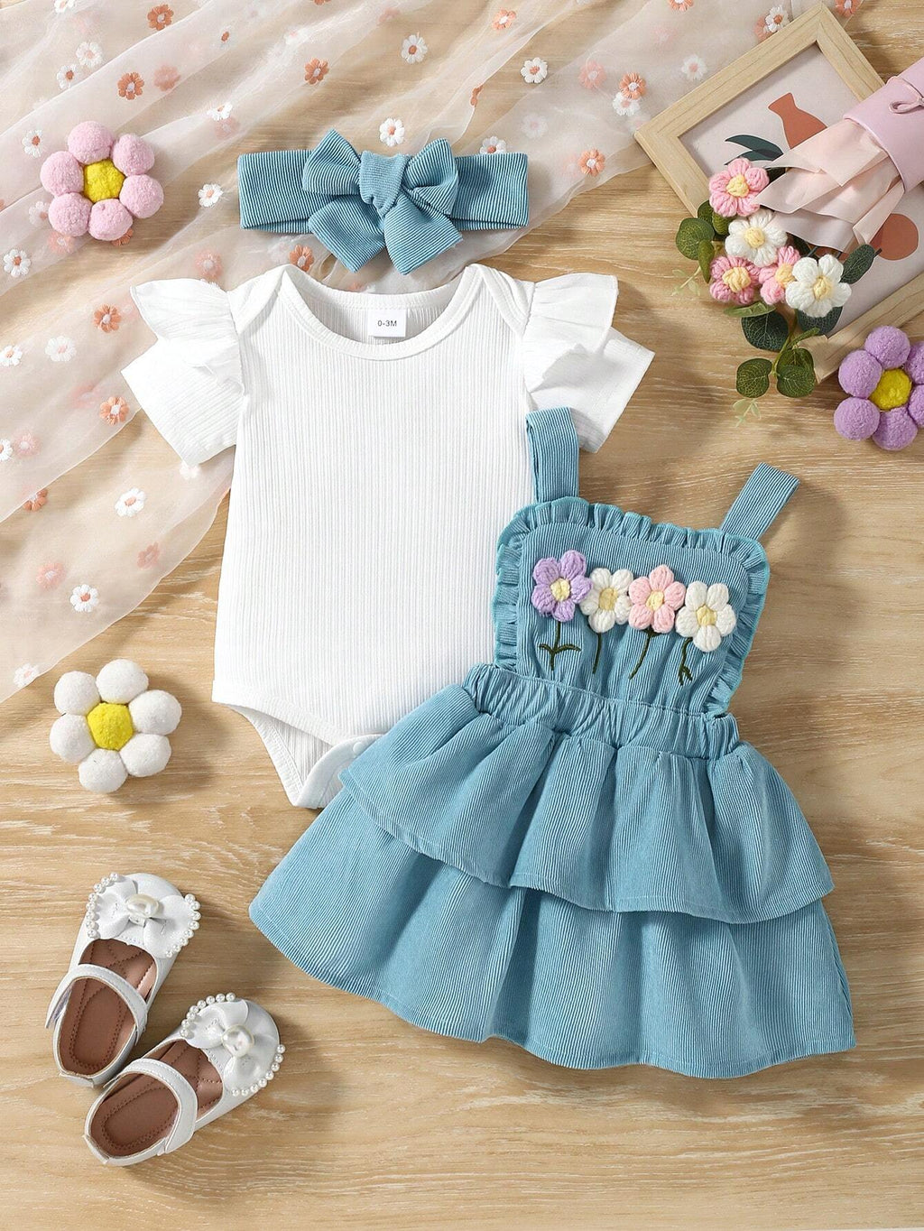 Body de Manga Curta , Vestido Bordado Floral Faixa de Cabeça:
