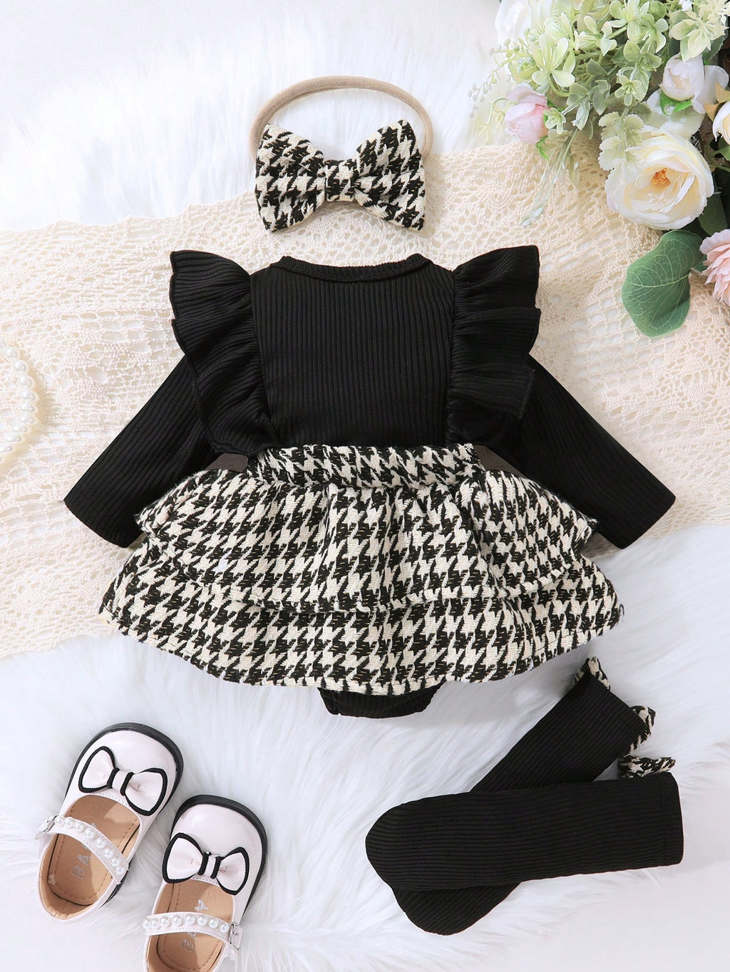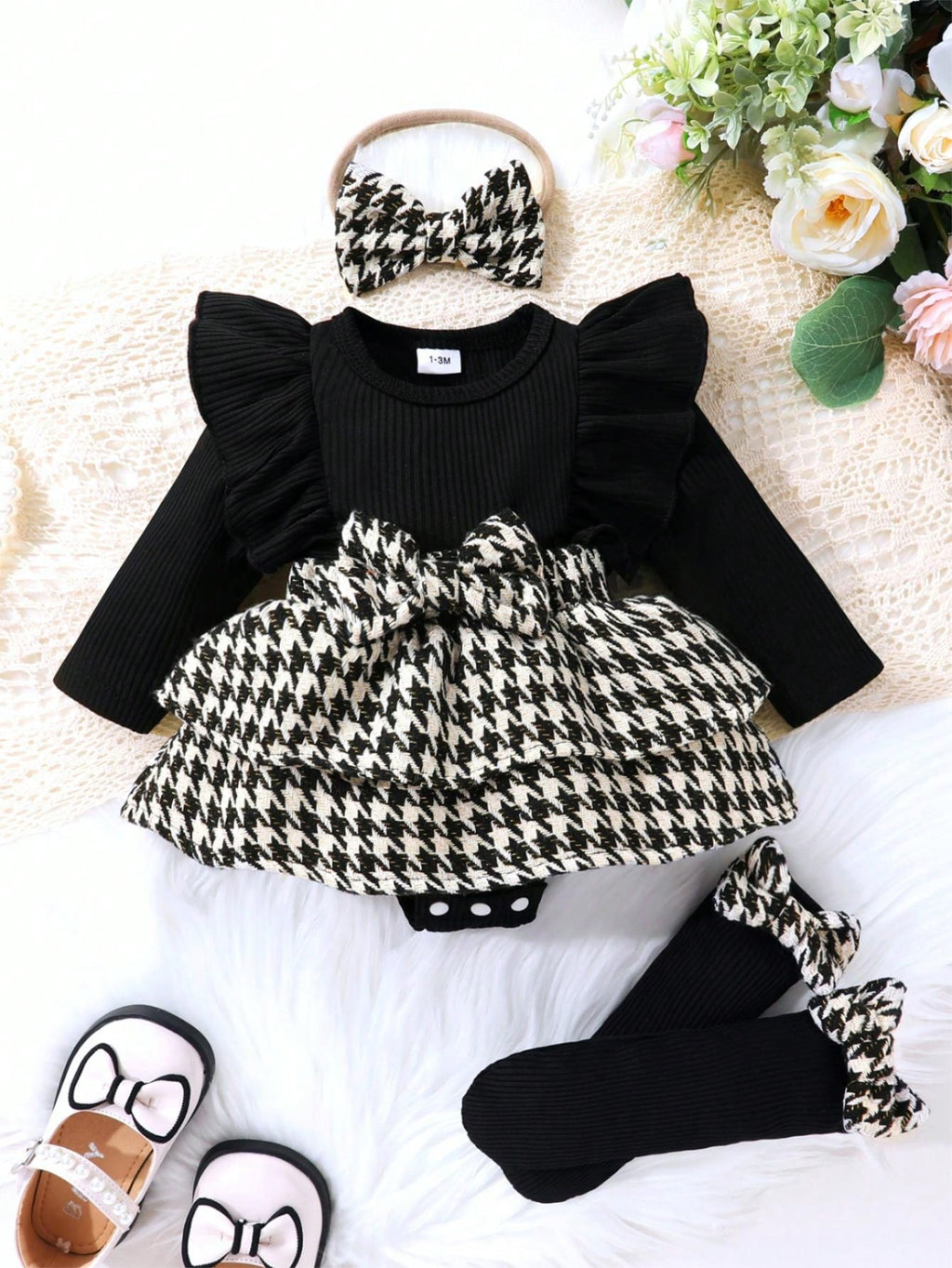 Conjunto 3 Peças/ Vestido Fofo e com Laço e meias