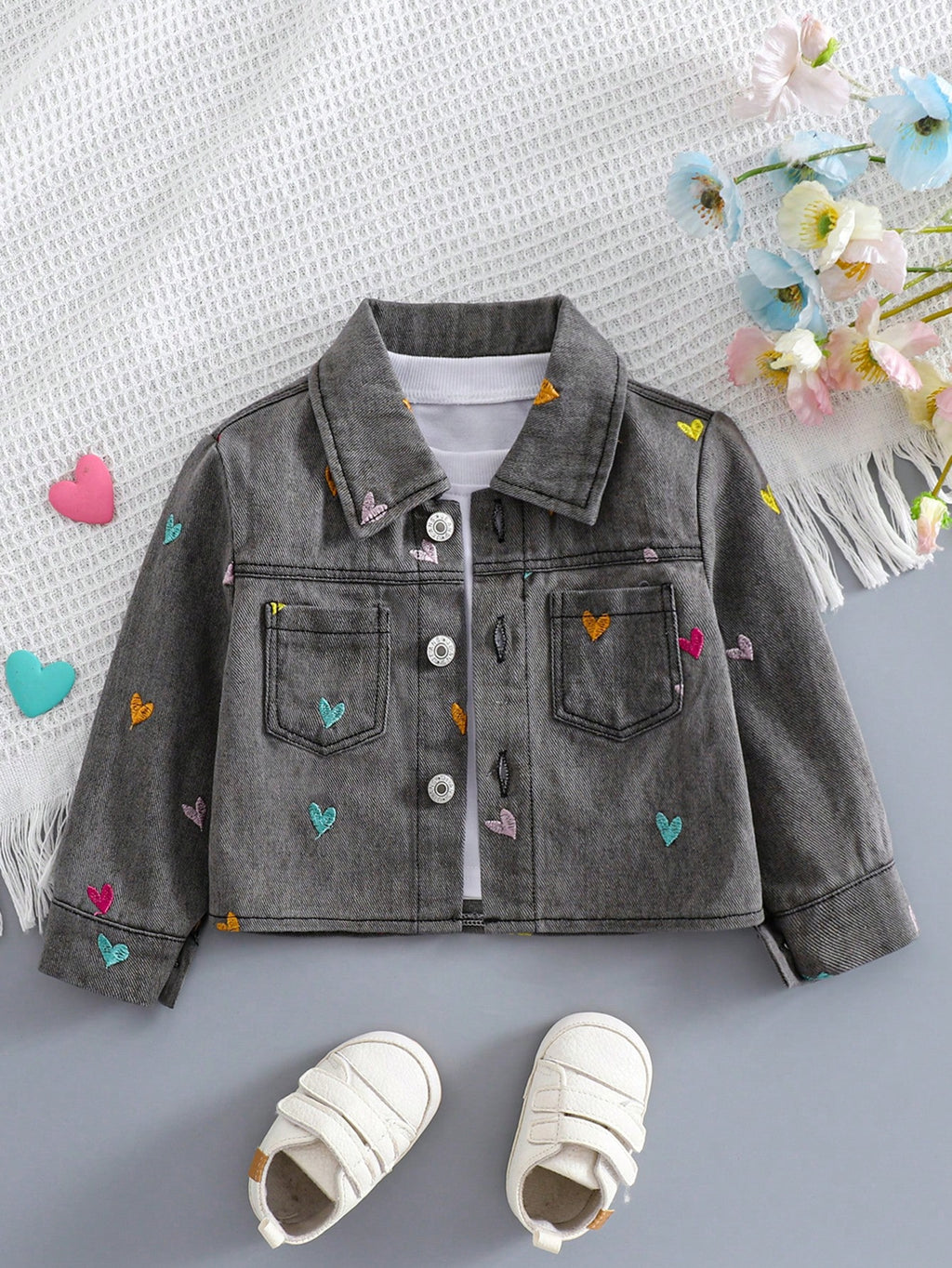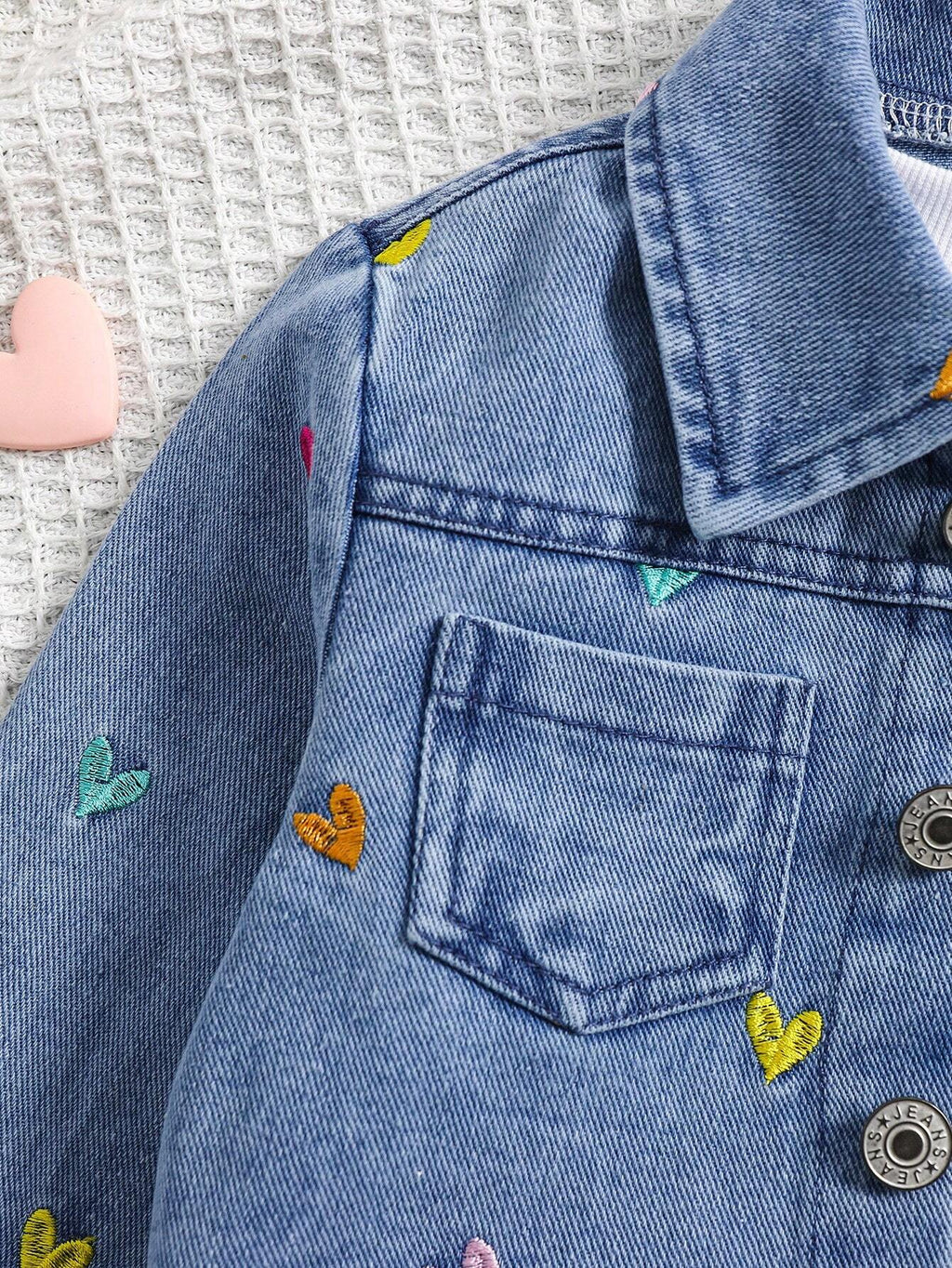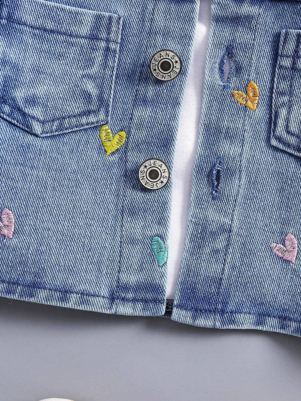 O fechamento em botões e o material principal em jeans garantem durabilidade e praticidade. Ideal para as estações mais quentes, essa jaqueta é uma peça essencial no guarda-roupa