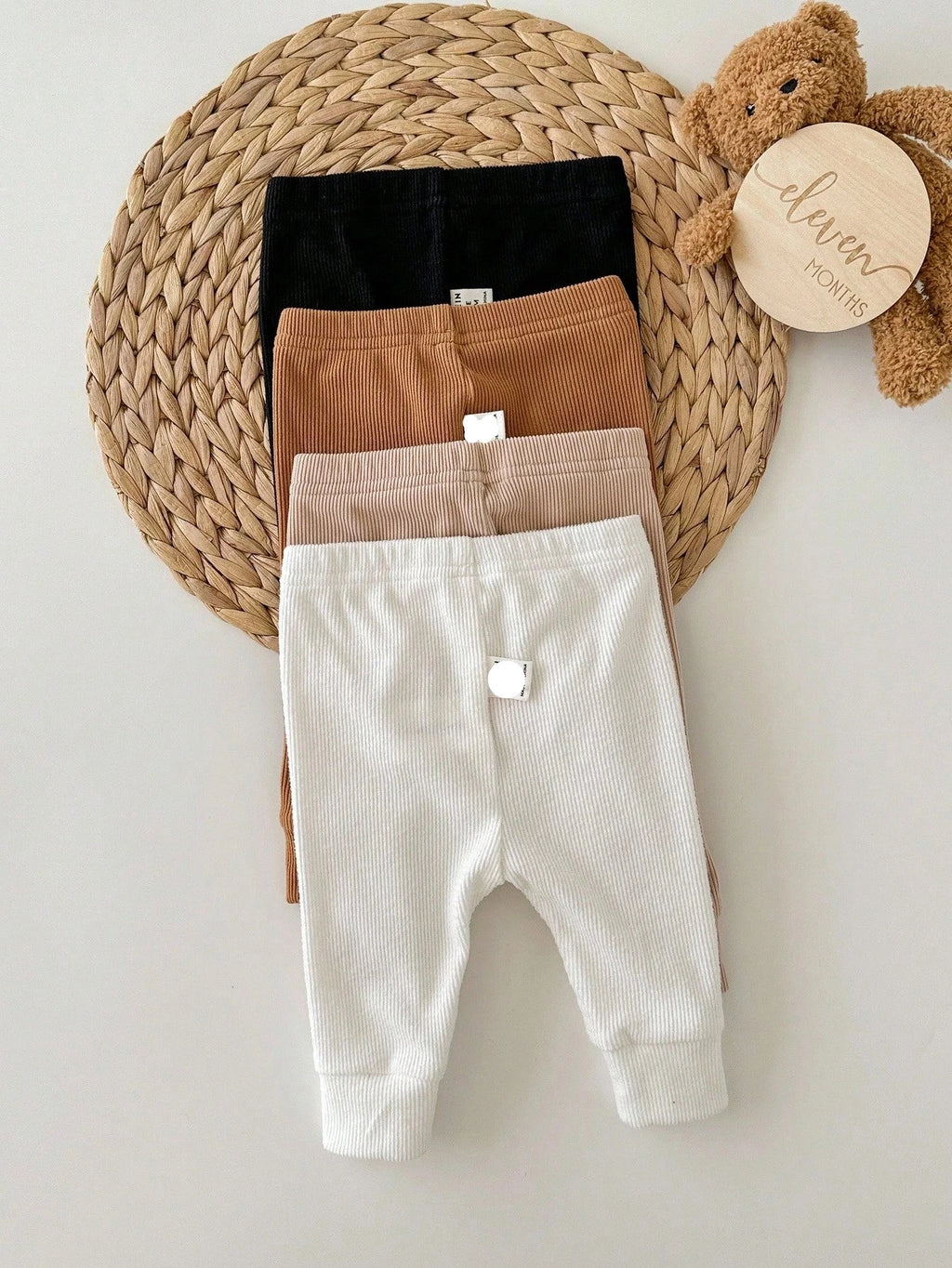 Kit Com 4 Calças Tricotado Em Ribana Unissex. Esse kit acompanha 4 calças básicas em malha de ribana. Conta com e punho na barra. Peças básicas e confortáveis para os babys brincar com liberdade!