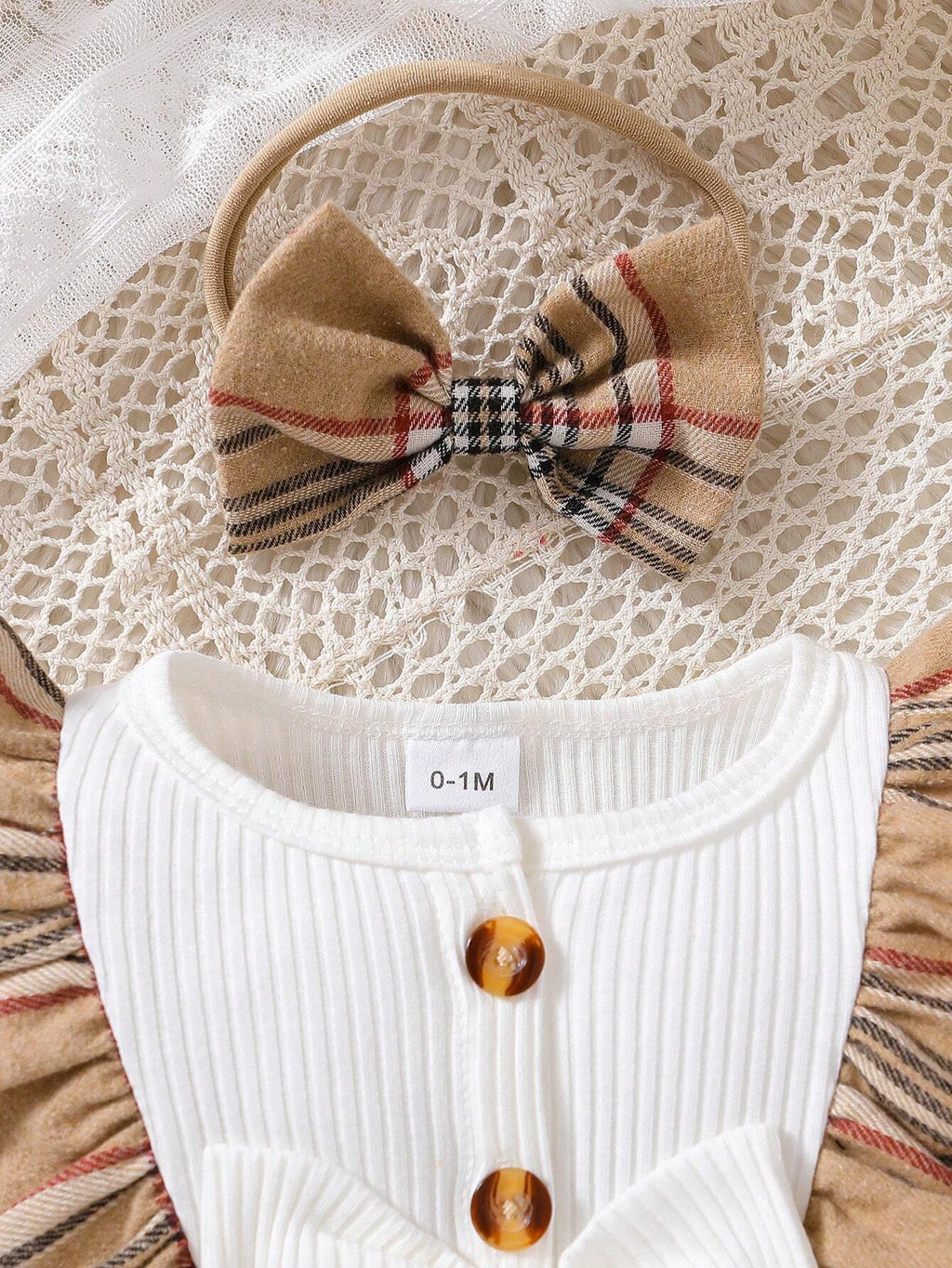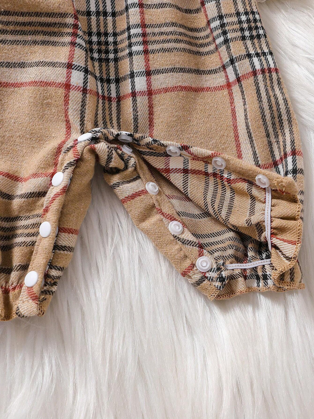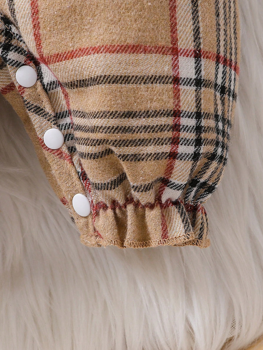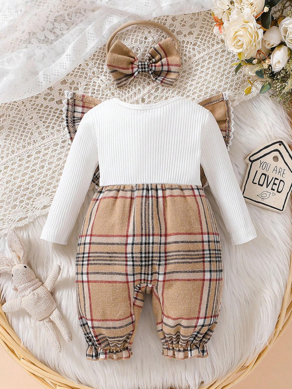 Macacao Longo Xadrez Bebe Menina Plush Algodão + Faixa