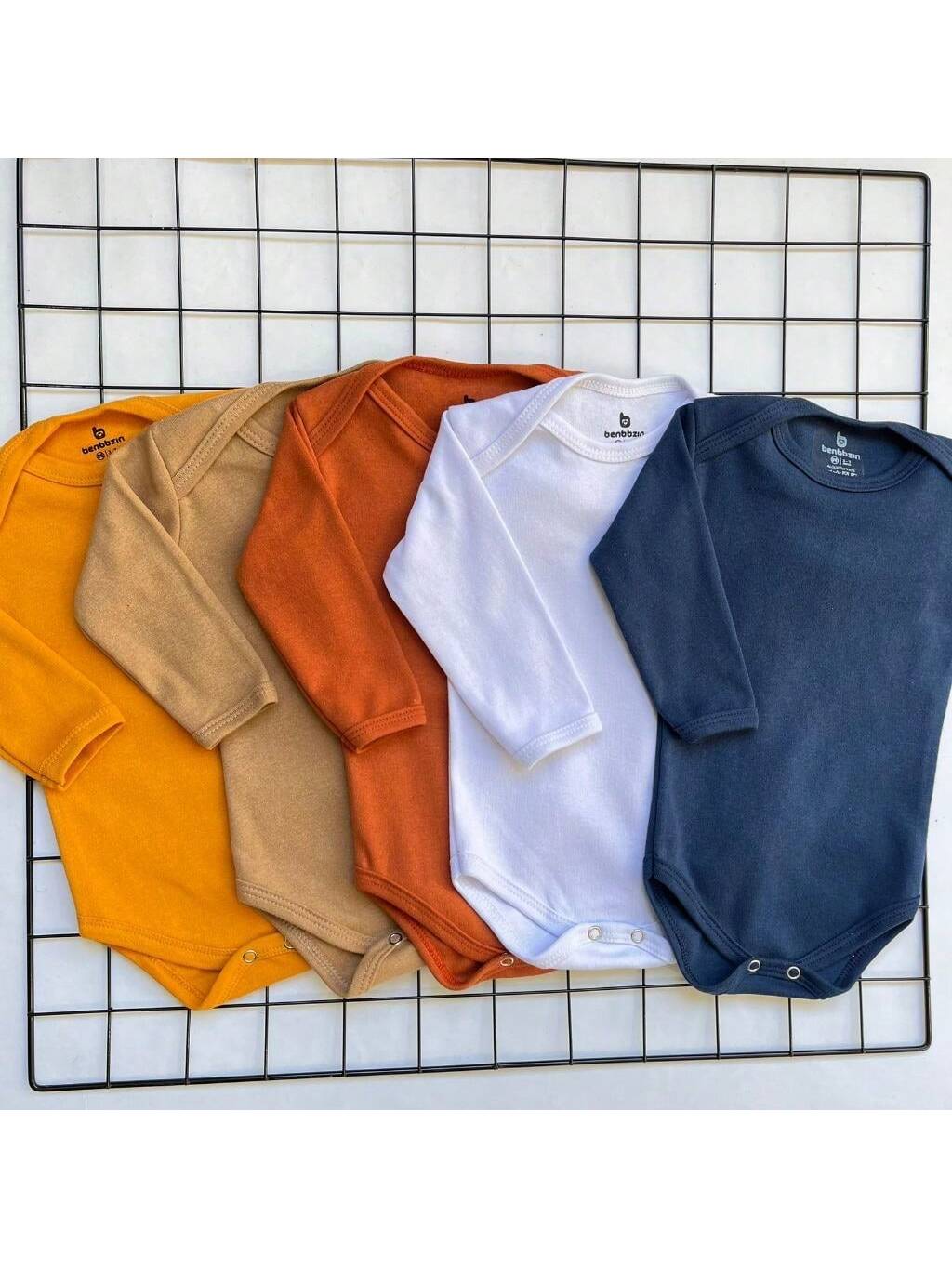 O conjunto é composto por 5 bodys com tons neutros e uma estampa delicada que transmite ternura e aconchego: