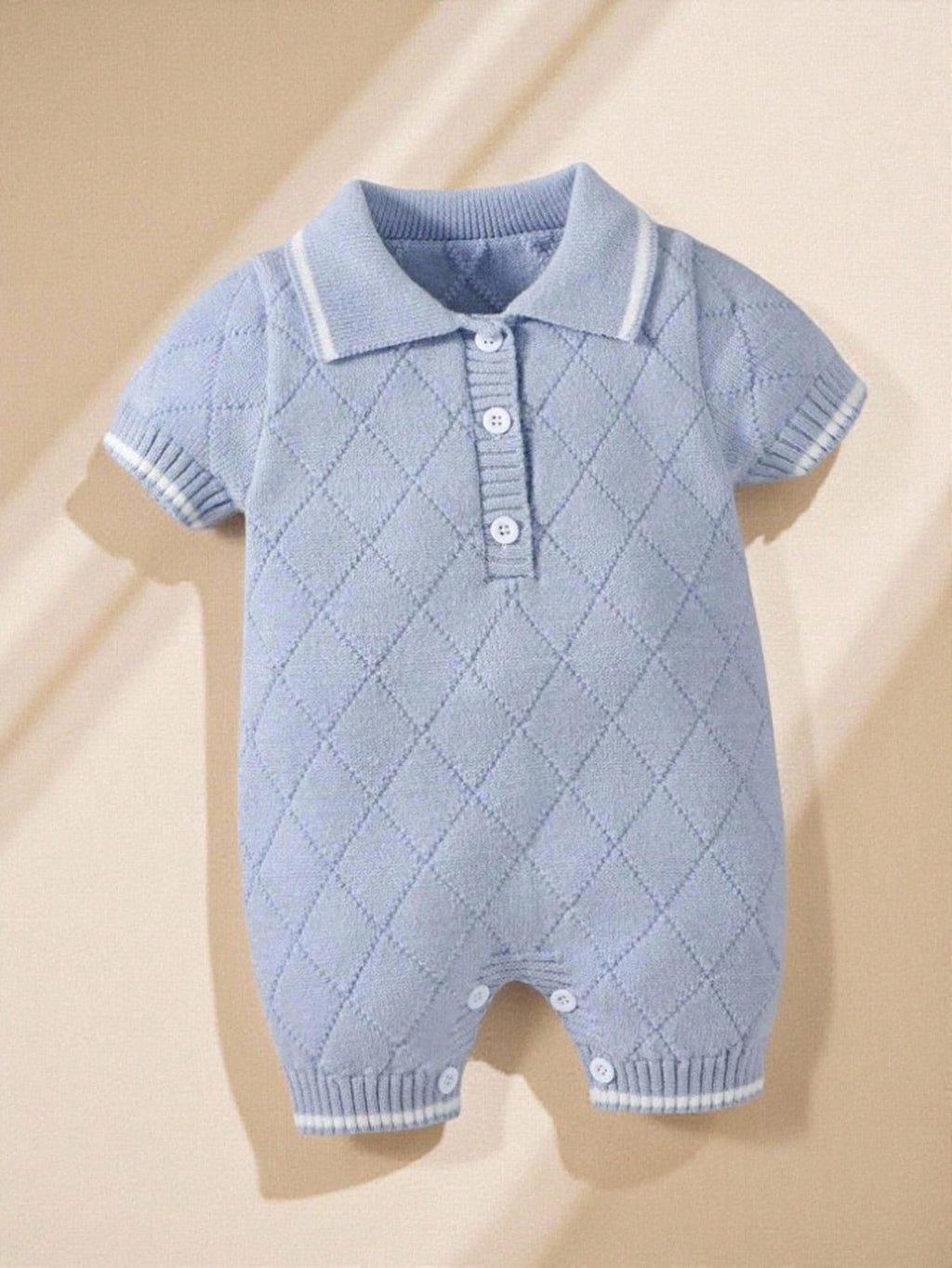 Macacão Polo Manga Curta Elegance é a escolha perfeita para deixar o seu bebê confortável e estiloso neste verão. Confeccionado em malha suedine 100% algodão, garante um toque macio e suave para a pele delicada dos pequenos.